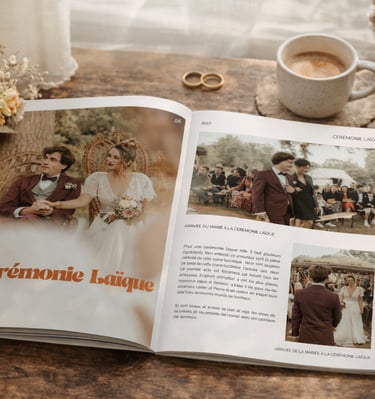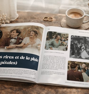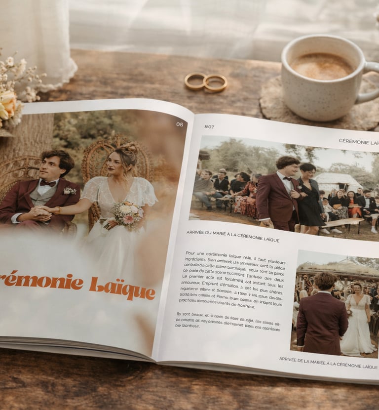Regarder vos photos dans un album, c'est toujours un joli moment de partage. Pourtant, certains clichés ont été pris loin de vos regards occupés le jour du mariage. Ces images sont belles, mais il vous manque quelque chose. Une bribe d'histoire, un contexte, quelques mots qui répondent à cette question :