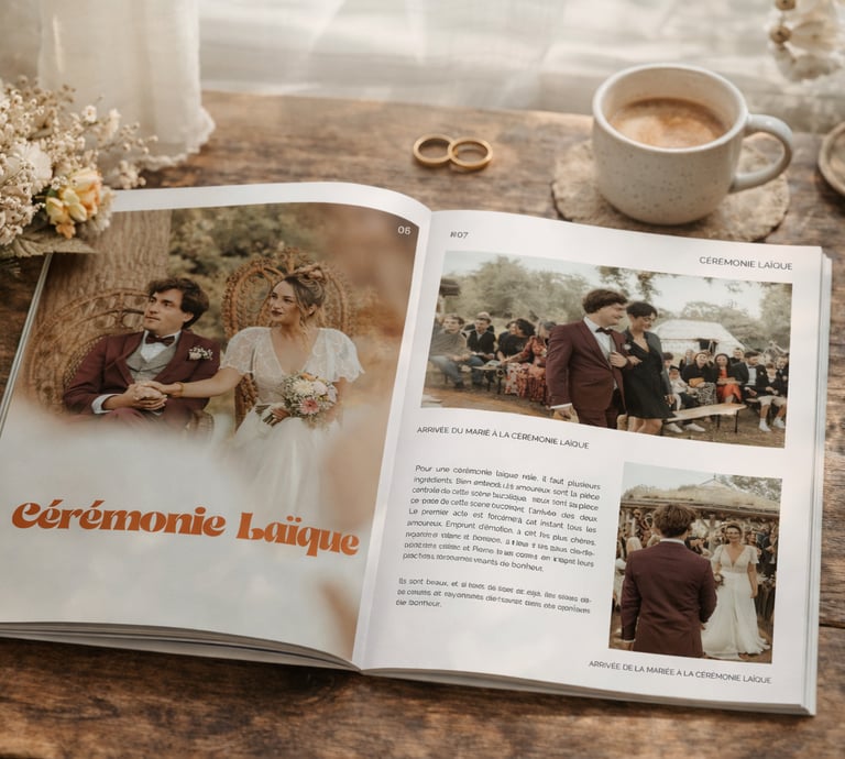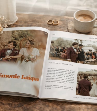 Regarder vos photos dans un album, c'est toujours un joli moment de partage. Pourtant, certains clichés ont été pris loin de vos regards occupés le jour du mariage. Ces images sont belles, mais il vous manque quelque chose. Une bribe d'histoire, un contexte, quelques mots qui répondent à cette question :
